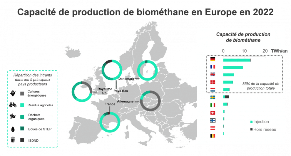 L’épuration du biogaz en biométhane connaît une croissance significative, avec une augmentation de plus de 30 % au cours des trois dernières années. Cette croissance se démarque dans plusieurs pays moteurs, notamment en France où le biométhane est le plus dynamique avec 149 nouvelles unités mises en service sur la seule année 2022 (+ 41 %). D’autres filières dynamiques, comme celles des Pays-Bas, de la Finlande, de l’Italie et de la Belgique, suivent cette tendance. C’est l’Allemagne qui détient cependant toujours la plus grande capacité de production de biométhane en Europe grâce à des parcs de production plus établis.