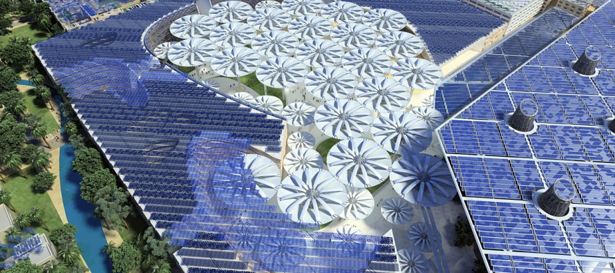 Masdar est une ville nouvelle de l’Émirat d’Abu Dhabi dessinée par l’agence d’architecture britannique Foster + Partners. Sa construction, entamée en 2009, devrait s’achever en 2030. Cette initiative urbaine repose sur un double objectif particulièrement ambitieux : « Zéro carbone et zéro déchet. » Située à 17 kilomètres à l’est de la ville d’Abu Dhabi, dans une zone aride où les températures peuvent atteindre 55 degrés en plein été, Masdar (la « source » en arabe) devrait accueillir près de 50 000 résidents et 1 500 entreprises sur une surface d’à peine 7 km². Nombre de ces entreprises constitueront le vivier d’une « Silicon Valley » des énergies renouvelables souhaitée par l’Émirat. L’approche inévitable du Peak Oil (amorçant l’inexorable déclin de la production de pétrole dans le pays du fait de l’épuisement des réserves pétrolières exploitables) oblige en effet cette pétromonarchie à développer une stratégie alternative en matière d’énergie.