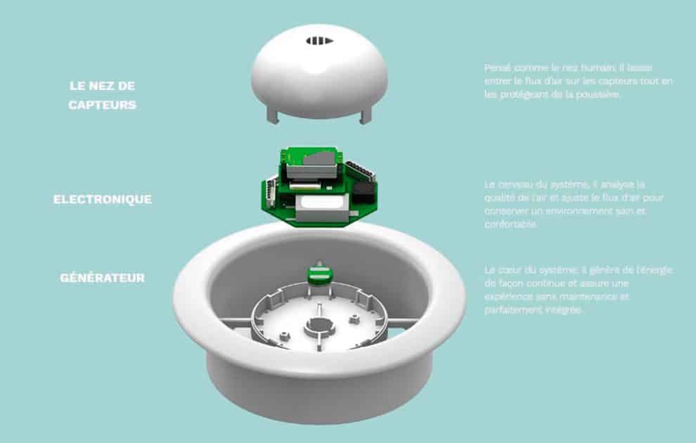 Cette technologie pouvant être installée dans les systèmes de ventilation produirait assez d’énergie pour faire fonctionner des capteurs intelligents régulateurs de la qualité de l’air. Les capteurs alimentés par les microgénérateurs Enerbee permettent, par exemple, de déterminer le niveau d’occupation d’une pièce, et de réguler le flux d’air en fonction. Les analyses menées par la start-up montrent que cette technologie permet de réaliser des économies d’énergie qui sont de l’ordre de 10 %.