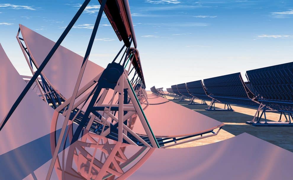 Depuis plusieurs années, le Maroc investit massivement dans le développement de son parc solaire. Ainsi, construite sur 3 000 hectares et d’une capacité de 580 mégawatts, la ferme solaire Noor de Ouarzazate est l’une des cinq plus grandes au monde et la plus importante en solaire thermique à concentration. Les installations de cette ferme permettent de délivrer de l’électricité non seulement pendant la journée, mais aussi après le coucher du soleil : pendant trois heures sur le site de Noor I, pendant sept heures sur celui de Noor II et presque en continu sur Noor III. Cela est permis par la technologie de centrales solaires à concentration thermodynamique (CSP, « concentrated solar power ») qui vient pallier l’intermittence de ce type d’énergie. Les centrales de ce type sont constituées de miroirs paraboliques concentrant le rayonnement solaire vers un tube qui chauffe un fluide caloporteur à base d’eau. Accumulée durant la journée, cette chaleur est pompée, puis stockée. Elle sert ensuite à transformer de l’eau en vapeur pour faire tourner une turbine qui produit de l’électricité.