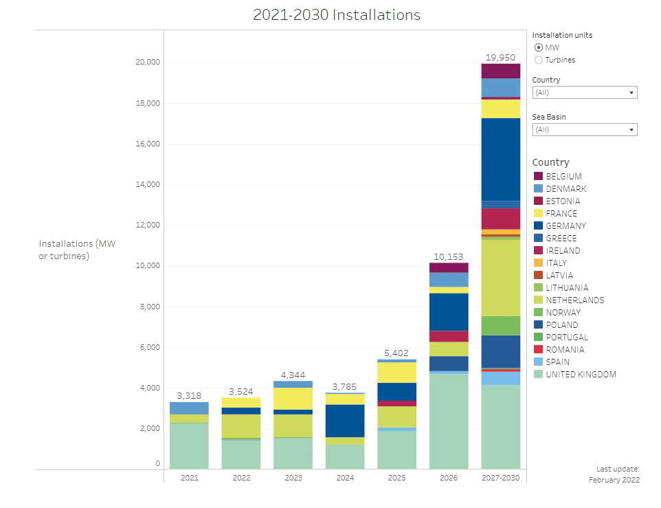L’Europe a construit 19 GW de nouvelles capacités d’énergie éolienne en 2022. Sur ce total, 16 GW ont été construits dans l’UE soit une augmentation de 40 % par rapport à 2021. C’est très inférieur à ce qui est nécessaire pour atteindre les objectifs de l’UE en 2030. Les investissements dans de nouveaux parcs éoliens et les nouvelles commandes d’éoliennes ont diminué en 2022, en raison notamment des interventions inutiles des gouvernements sur les marchés de l’électricité et de l’inflation.