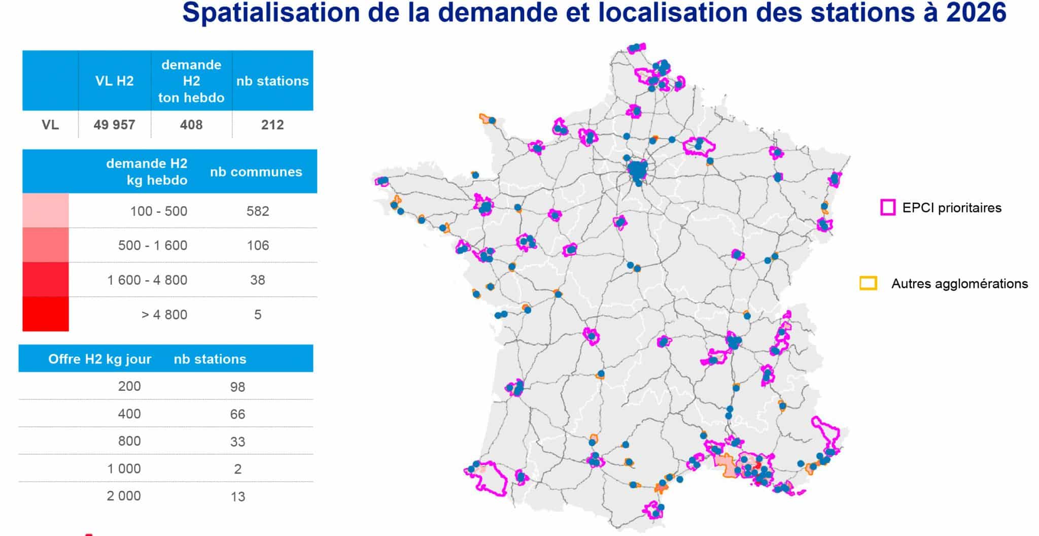 « L’ambition de la Commission européenne de réduire les émissions CO2, et le Ban des moteurs thermiques en 2035 pour les véhicules légers nécessitent une accélération très significative de l’électrification, majoritairement des véhicules électriques à batterie, mais également des véhicules à hydrogène, deux technologies complémentaires. Les véhicules à piles à combustible hydrogène répondent aux usages intensifs des segments VUL, taxis, bus, camions lourds et longue distance, en garantissant une mobilité zéro-émission, un temps de remplissage rapide, l’autonomie attendue et des capacités de remorquage et de charge utile élevées. Un déploiement simultané de l’infrastructure bien positionnée, avec plus de 1000 stations pour la France, est nécessaire pour accompagner les véhicules déjà proposés par les constructeurs dont près de 350 000 rouleront en 2030. »