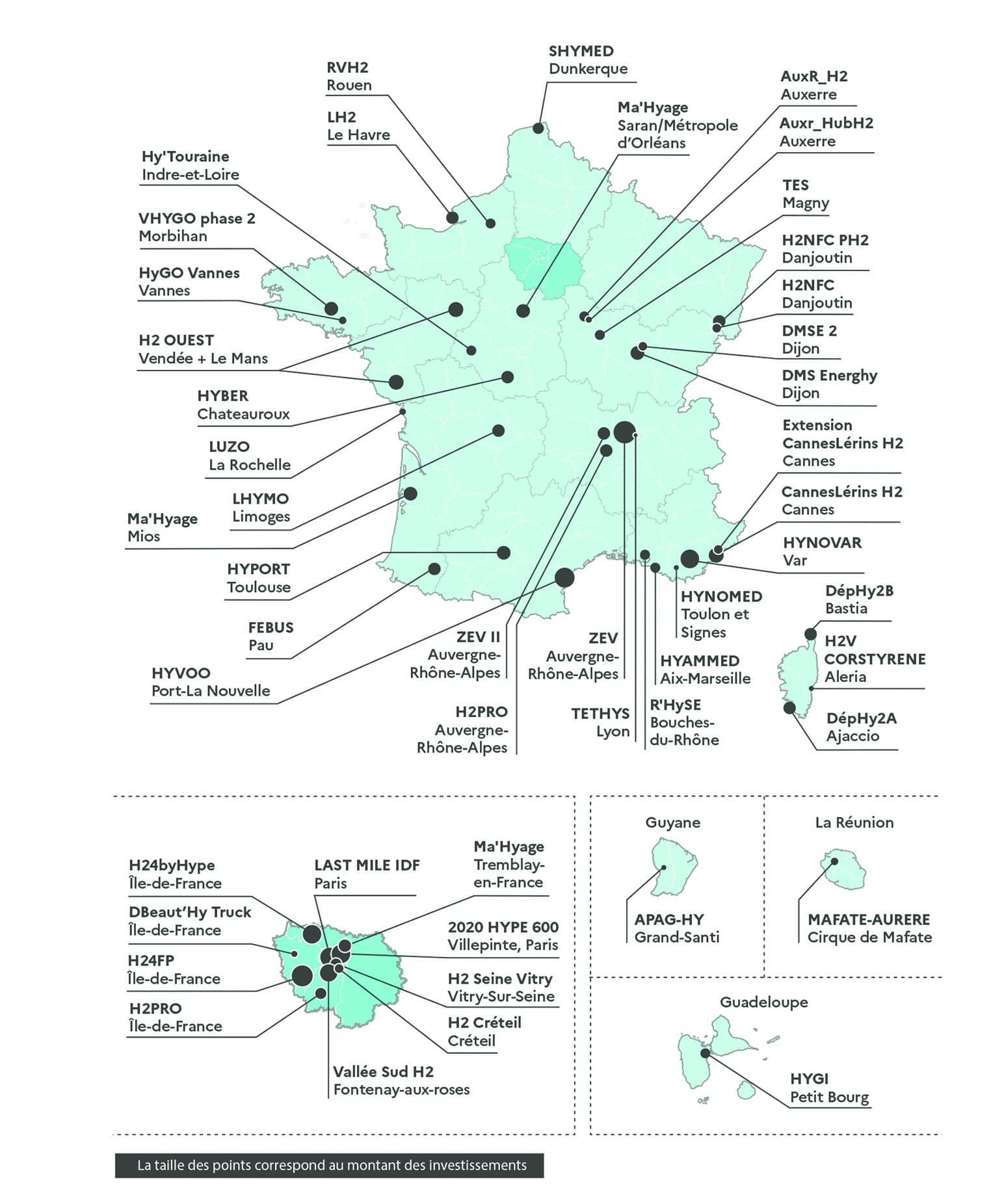 Du côté de l’Ademe, Luc Bodineau, coordinateur du programme Hydrogène, et Gwendal Méance, chef de projet Hydrogène, étaient à la manœuvre. Ils ont rappelé que, suite aux AAP de mobilité (2018–2019) et d’écosystèmes territoriaux (2020–2021), 35 écosystèmes avaient été constitués. Quarante-six dossiers ont été sélectionnés sur 138 déposés. L’investissement se monte au total à 1,3 milliard d’euros. Ces écosystèmes vont faire naître 100 stations et favoriser le déploiement de 800 véhicules, avec à la clé 81 MW d’électrolyse.