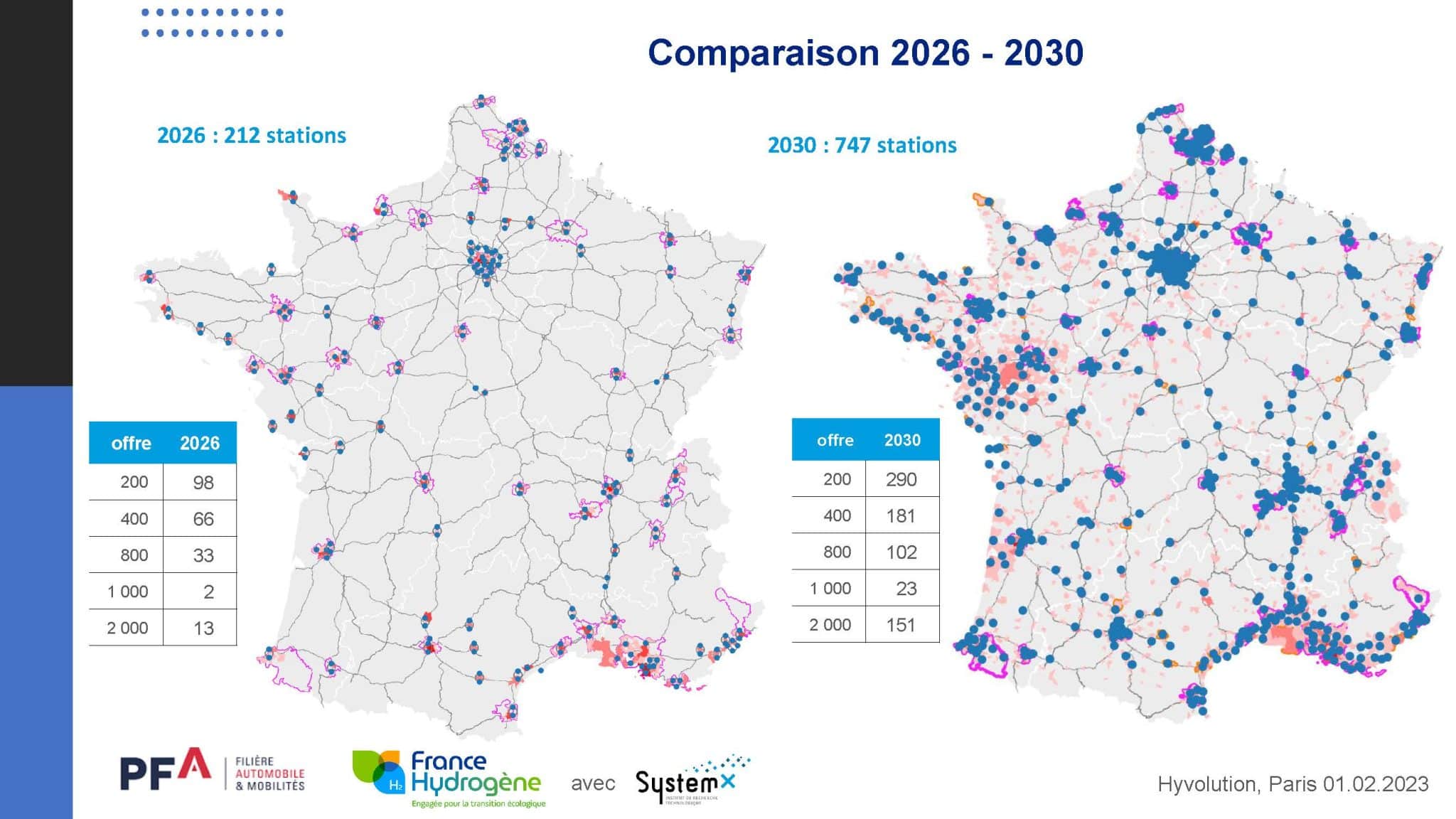 En France, la motorisation, la production et la distribution locales d’hydrogène vert sont encore balbutiantes. Et le coût élevé d’investissements dans une solution de bus à hydrogène demande une forte motivation des collectivités. Le déploiement se fait plutôt à partir de stations et de flottes « locales » captives par des collectivités accompagnées de développeurs, pour assurer un écosystème territorial de production et d’usage. L’idée d’un maillage national de stations, qui impliquerait une production beaucoup plus importante d’hydrogène vert, est encore lointaine. Cependant, les initiatives locales laissent entrevoir des points d’avitaillement sur la carte. Ce schéma de déploiement, s’il n’est pas spectaculaire et rapide, avance avec précaution, car dans d’autres pays un rétropédalage est constaté au niveau de la distribution d’hydrogène. Ainsi, au Danemark la société Everfuel a jeté l’éponge dans son projet de réseau de 19 stations et a même fermé les trois stations existantes, après une perte de 11 millions d’euros sur le seul semestre 2023, pour un pays qui ne compte que… 136 véhicules à hydrogène. Le CEO d’Everfuel a indiqué ne pas pouvoir remplacer le réseau public d’hydrogène. En Californie, de nombreuses stations sont ainsi mises à l’arrêt par manque de rentabilité voire par manque de… carburant.
