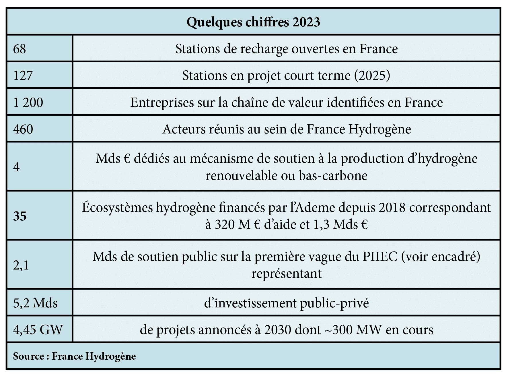 Pilier majeur de la décarbonation de l’économie et de l’indépendance énergétique nationales, les technologies de l’hydrogène font progressivement leur entrée dans le paysage, entre capacités de production massive, infrastructures de transport et de distribution et développement des usages, notamment en termes de mobilité lourde et intensive. Si l’on y ajoute les démonstrateurs de stockage massif, les filières aéronautiques et maritimes, ainsi que les projets de production d’e‑fuels, tous les maillons de la chaîne de valeur se mettent en place.