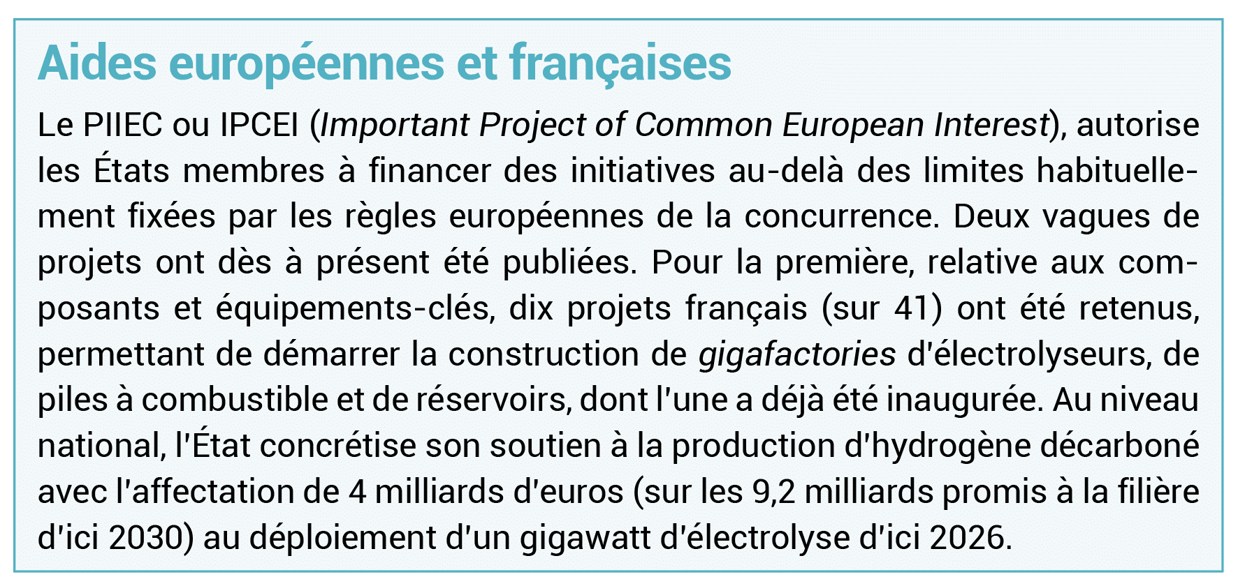 En France, la stratégie nationale hydrogène ambitieuse qui vise les premiers rôles mondiaux dans l’hydrogène décarboné arrive à un point d’étape avec l’annonce de sa révision et doit évoluer selon France Hydrogène. Il est important de conserver l’ambition initiale, fondée sur l’alliance décarbonation-réindustrialisation, où le déploiement d’une filière robuste et d’une offre compétitive va de pair avec la stimulation de la demande et l’essor des technologies favorisant les différents usages. En France les deux lois d’accélération relatives au nucléaire et aux énergies renouvelables devraient y concourir.