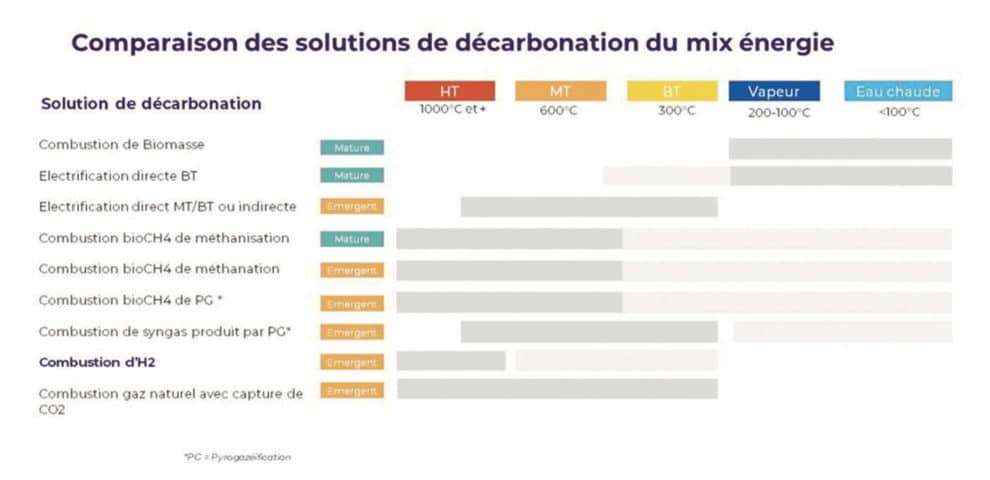 L’industrie diffuse, répartie sur l’ensemble du territoire, représente 40 % des émissions industrielles en France (reseauactionclimat.org). Une grande partie des émissions de gaz à effet de serre de l’industrie manufacturière découle de la combustion d’énergie fossile. Pour les besoins de chaleur à moyenne et haute températures, les filières de combustion, telles que l’hydrogène, se présentent comme des alternatives sérieuses.