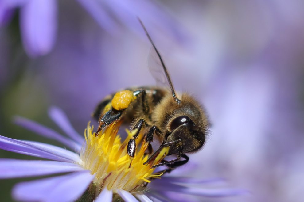 Légende de la photo ci-dessus : Abeille mellifère, Apis mellifera, à la recherche de nectar floral. © Shutterstock