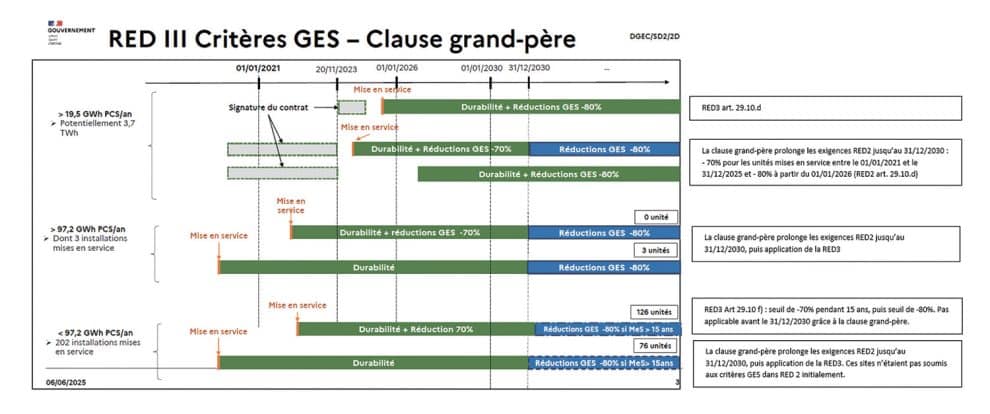 Le 21 mai 2025 marquait la date limite de transposition en droit français de la directive européenne RED III. Une clause « grand-père » permet de tenir compte des projets déjà engagés.