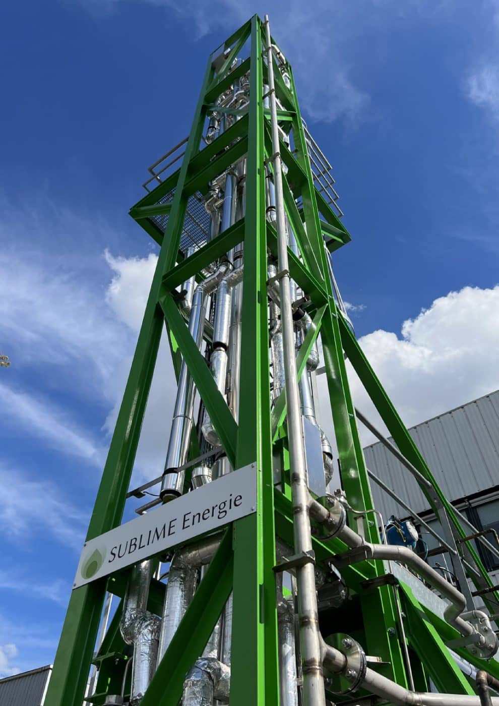 Fondée en 2019, SUBLIME Énergie a développé un procédé breveté de liquéfaction simultanée du biométhane et du bioCO2. Bien que leurs températures de liquéfaction soient très différentes (-56 °C pour le CO2, ‑140 °C pour le méthane), l’ajout d’un agent de portage rend possible cette liquéfaction.