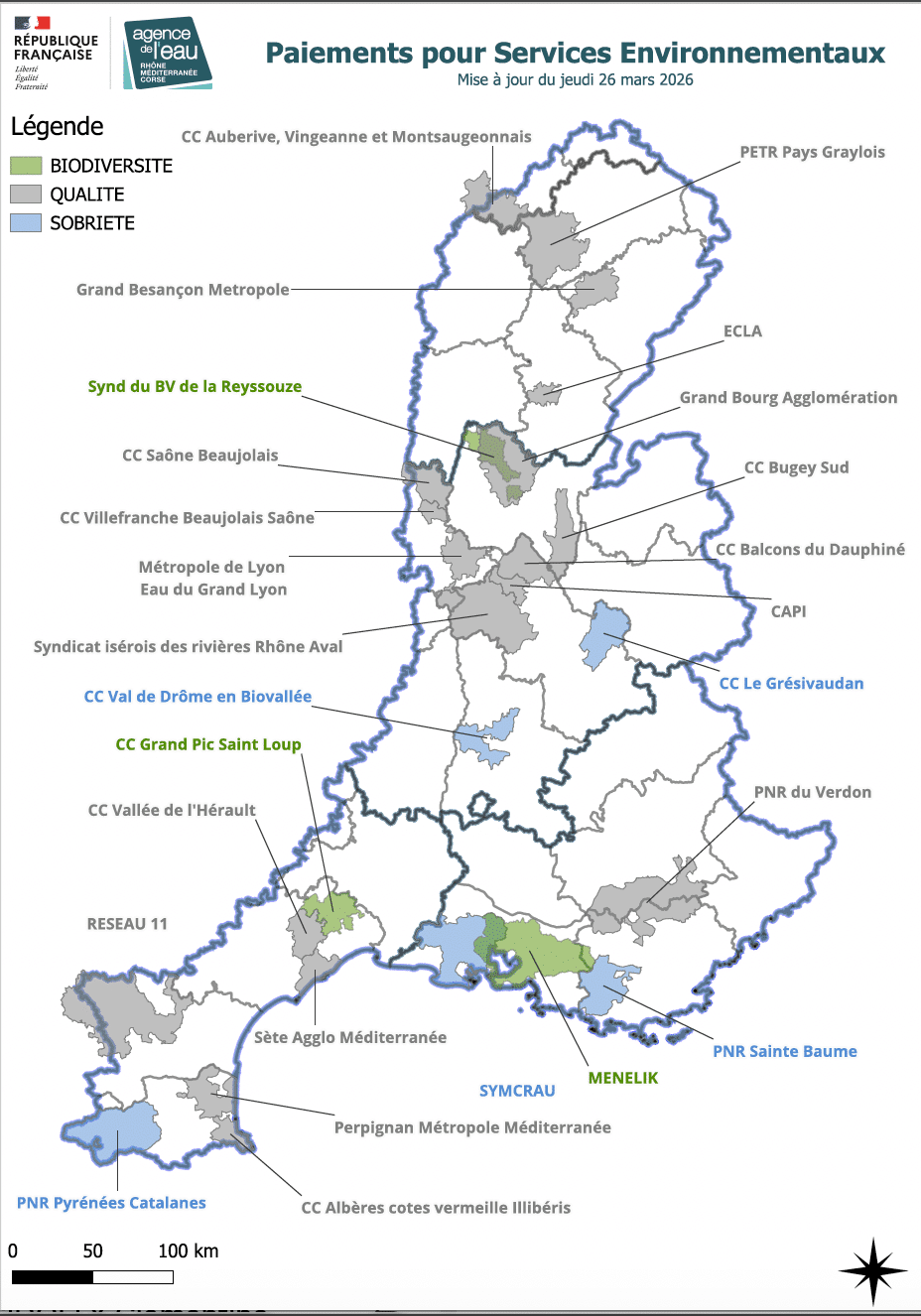 La protection de la ressource en eau franchit une nouvelle étape dans le bassin sud-est de la France. L’Agence de l’eau Rhône Méditerranée Corse vient d’annoncer la sélection de 27 projets de Paiements pour services environnementaux (PSE), portés en grande majorité par des collectivités territoriales. Objectif : accompagner les agriculteurs dans la transition de leurs pratiques pour préserver durablement l’eau et les milieux naturels.